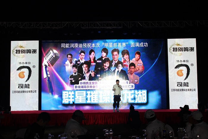 ? ? ? ?2014年12月15日晚,柳州臥龍湖高爾夫俱樂部隆重舉辦開業(yè)周年慶典暨會(huì)員“明星慈善邀請(qǐng)賽”,孫楠、王寶強(qiáng)、朱時(shí)茂等十幾位明星齊聚柳州臥龍湖。高爾夫賽事、慈善晚宴、文藝匯演,司能潤(rùn)滑油作為協(xié)辦單位傾情傾力,與群星共同呈現(xiàn)了一場(chǎng)璀璨搖曳的視聽饕餮盛宴。