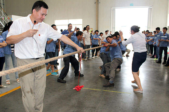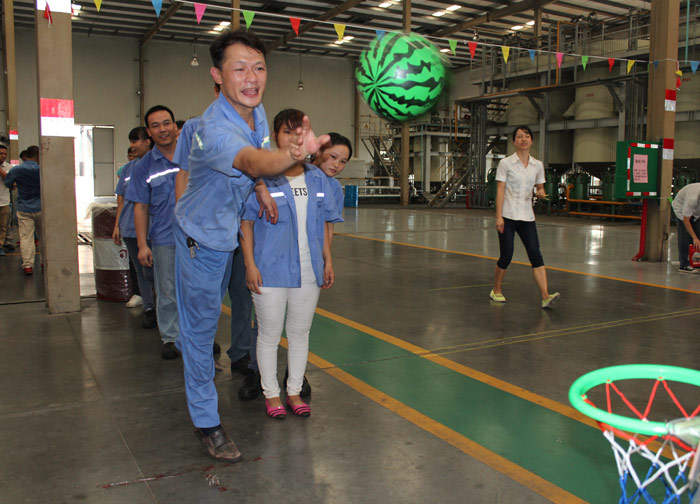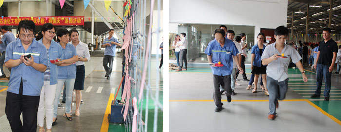 ? ? ? ? 9月25日下午15:00整,隨著一聲響亮的哨聲,游園活動在調油車間正式開始。點球大戰(zhàn)、投籃高手、大步流星、眼疾手快、猜謎、繞口令這些趣味十足的游戲讓員工們玩的不亦樂乎。彰顯團隊凝聚力的拔河比賽最為精彩,隊員們都咬緊牙關,使出全身力氣,都想在緊張激烈的力量拉鋸戰(zhàn)中勝出,觀眾的加油吶喊聲連綿不斷,現(xiàn)場氣氛熱烈至極,獲勝的隊伍歡呼雀躍,擊掌慶祝。