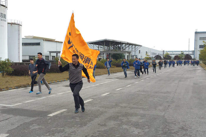 ? ? ? ?下午15:30,公司領導帶頭在橫幅上簽名,參加活動的員工紛紛簽名并寫下祝語,有祝公司業(yè)績蒸蒸日上,也有希望個人工資翻倍、身體倍棒、吃嘛嘛香等不同的寄語。隨后進行的迎新跑步活動將氣氛推向高潮。員工們意氣風發(fā),迎著新希望邁步向前沖,個個以勝利手勢沖向終點。