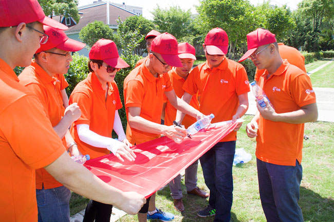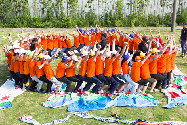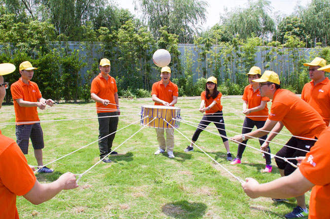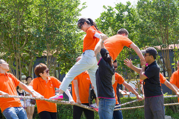 擰成一股繩,我們的力量足以支撐4個(gè)人的體重在繩上行走,在繩上行走的伙伴正象征著我們的領(lǐng)導(dǎo)層,他們需要相信伙伴們的力量,而底下伙伴的支持才是成功的關(guān)鍵!